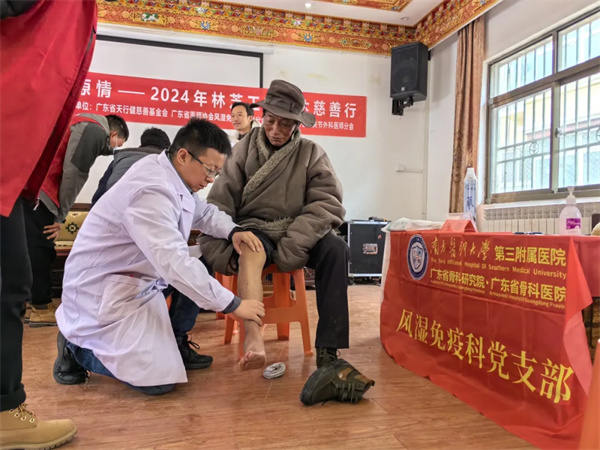 4月15日的早晨,西藏林芝市工布江达县,一条长队在晨光中蜿蜒。他们等待的是广东省医师协会风湿免疫科医师分会和广东省医师协会骨关节外科医师分会的专家队伍的到来。这些专家教授不仅带来了医疗技术,更带来了希望。