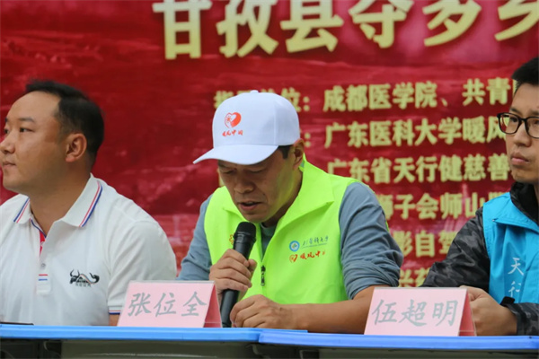 今天下午,2024年广东医科大学暖风中国志愿服务队&成都医学院成医青橙社会实践队甘孜县夺多乡三下乡活动启动仪式在甘孜县夺多乡小学顺利举行。夺多乡党委书记泽翁仁真、乡长格拥,广东省天行健慈善基金会理事、视光师志愿者队队长伍超明,广东省天行健慈善基金会党支部书记、项目部长郑卓昆,“暖风中国”志愿服务队领队张位全老师,成医青橙社会实践队领队张录顺老师,成都医学院驻夺多乡干部张洪亮先生,东莞市众磊公益基金会理事莫沃林等领导嘉宾及“三下乡”队员代表、参与支教课程的夺多乡学生共100余人出席仪式。